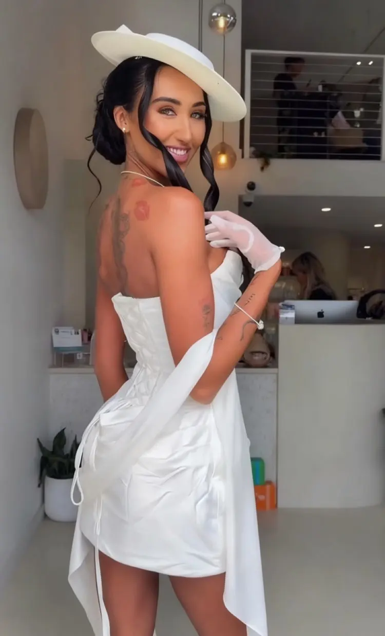 VESTIDO CORTO STRAPLESS CON CUELLO TIPO CORSE